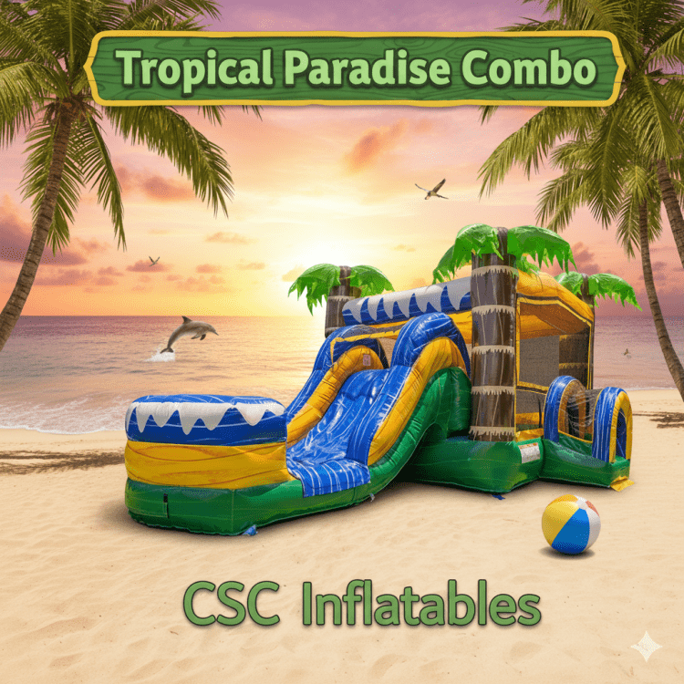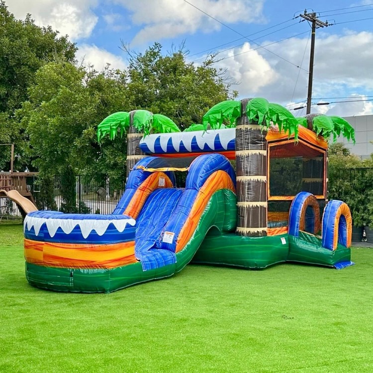 If you're looking for a fun, new way to bring the family together, look no further than the XJUMP 13' ft Tall Tropical Ocean Bounce House Water Slide Combo with an attached splash pool! This unique product can accommodate kids and adults, turning your backyard into a tropical paradise waterpark. Whether you're looking to keep the kids entertained all day long or want to spend some quality time with your friends and family, this Bouncy House Wet Dry Slide Combo with an attached splash pool is sure to please.