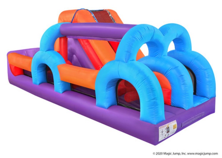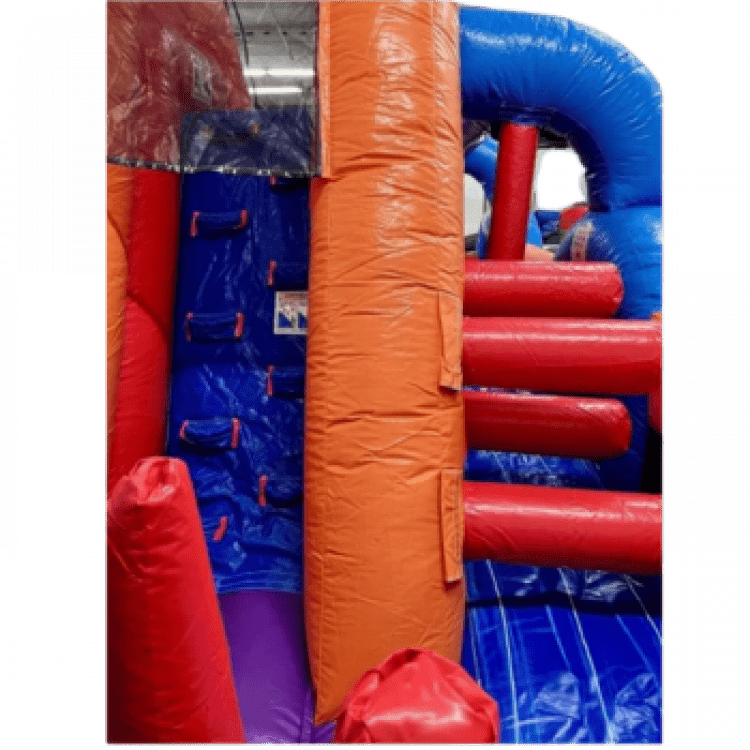 U Slide N Splash Obstacle Course features 6 unique obstacle elementals riders have to go through along with a climber and slide at the end. Enjoy this inflatable wet or dry! When used as a wet obstacle course riders can enjoy a slide n splash, obstacle course, slide and finish with the 'splash zone.' This unique design has something that everyone will love and can be enjoyed all year round.